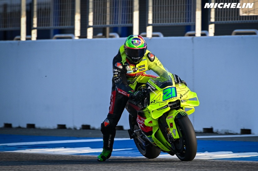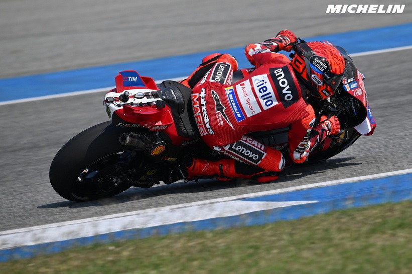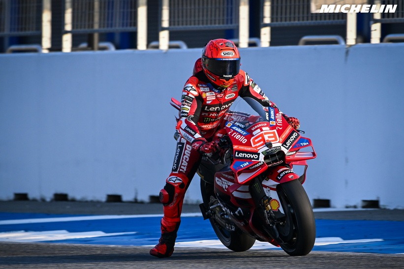 A l’issue de la 2ème journée de Tests, les Chronos se sont encore améliorés et c’est le champion du monde en Titre Marc Marquez #93 (Ducati Lenovo Team) qui s’octroie le meilleur Chrono en 1’28 »836 devant son co-équipier Francesco Bagnaia #63.