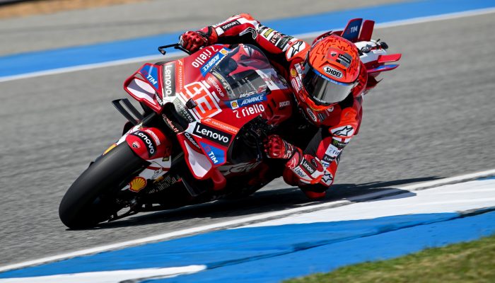 A l’issue de la 2ème journée de Tests, les Chronos se sont encore améliorés et c’est le champion du monde en Titre Marc Marquez #93 (Ducati Lenovo Team) qui s’octroie le meilleur Chrono en 1’28 »836 devant son co-équipier Francesco Bagnaia #63.